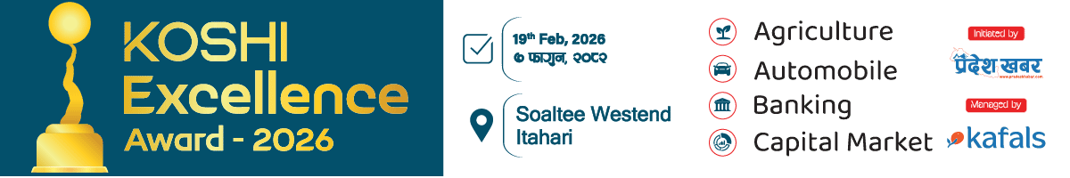 आउँदो फागुन ७ गते इटहरीको सोल्टी वेस्ट्रन होटेलमा कोशी प्रदेशको पर्यटन, व्यापार र सामाजिक सांस्कृतिक पहिचान प्रवर्धनका लागि योगदान गर्ने उद्देश्यले कोशी एक्सिलेन्स अवार्ड – २०२६ आयोजना हुँदै छ ।